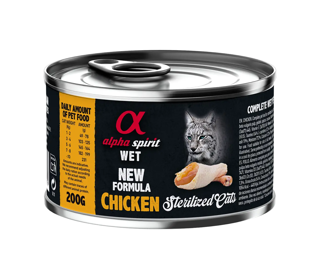 ALPHA SPIRIT FELINE ESTERILIZADO POLLO LATA CAJA 6X200GR