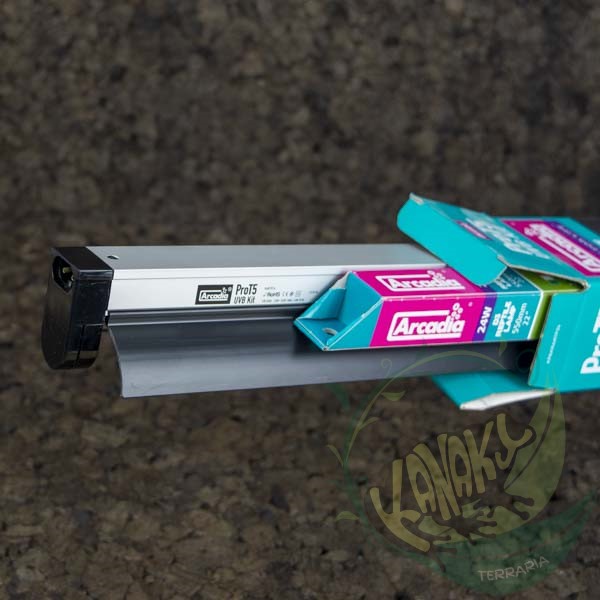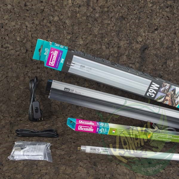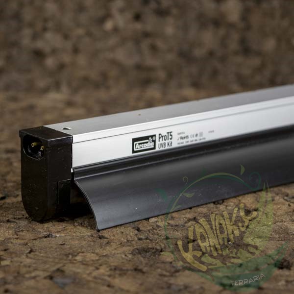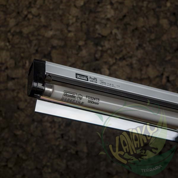 Este kit de iluminación incluye un tubo T5 D3+ UV a elección y una pantalla de gran calidad, con una electrónica interna diseñada por especialistas alemanes. Su reflector extraíble permite una perfecta reflexión de la luz hacia el interior del terrario, y con el cable de enlace puedes conectar en serie hasta 10 kits.