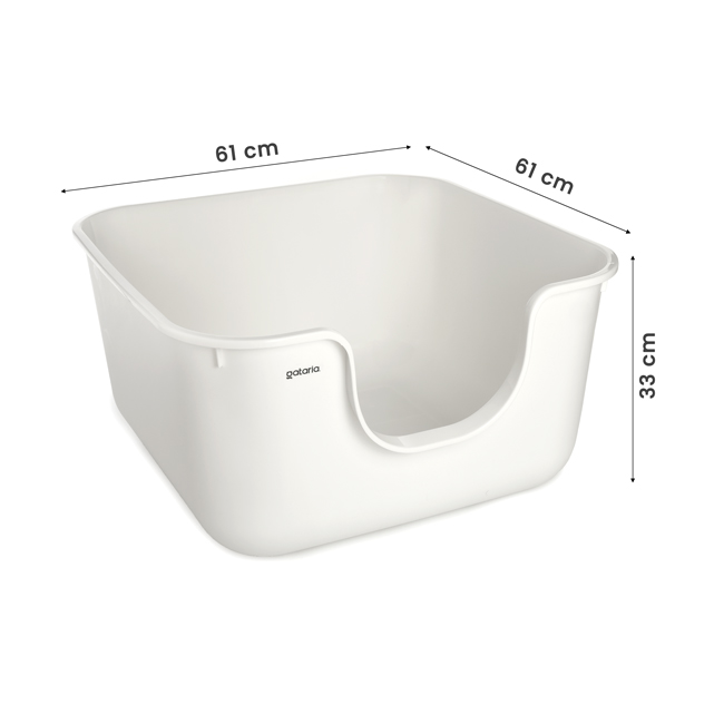 Antes de hacer el pedido: verifique el espacio disponible para asegurarse de que este arenero quepa. Es un arenero XXL que mide 61x61x33 cm.