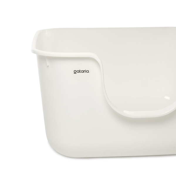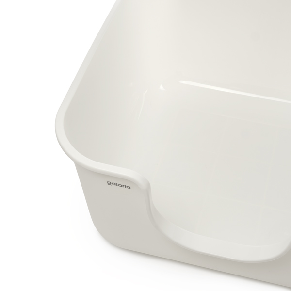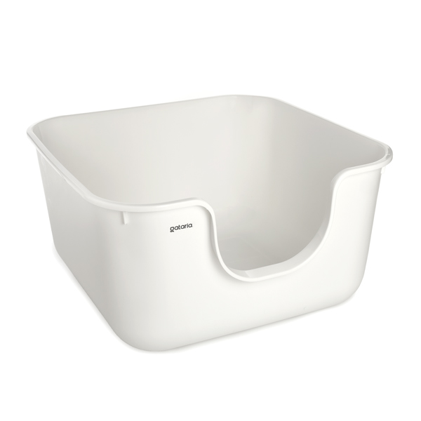 Este arenero abierto y espacioso es cómodo para todos los gatos. Tiene la particularidad de tener paredes altas y, por eso, evita que la arena salga al exterior.