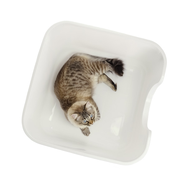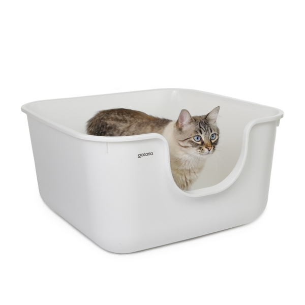 - Gatos que orinan hacia atrás (gracias a las paredes altas que evitan fugas de orina).