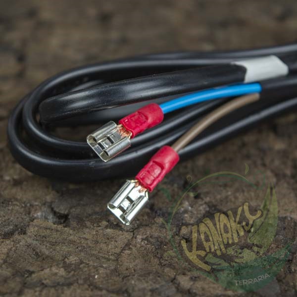 Cable eléctrico para dar corriente a la bomba de vibración ULKA del sistema de lluvia. Incluye conexiones faston para un rápido acople con la bomba y un cable de 2m.