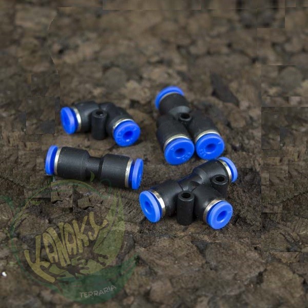 Piezas del sistema de lluvia de 4mm necesarias para organizar el riego en nuestros terrarios con una sola bomba.