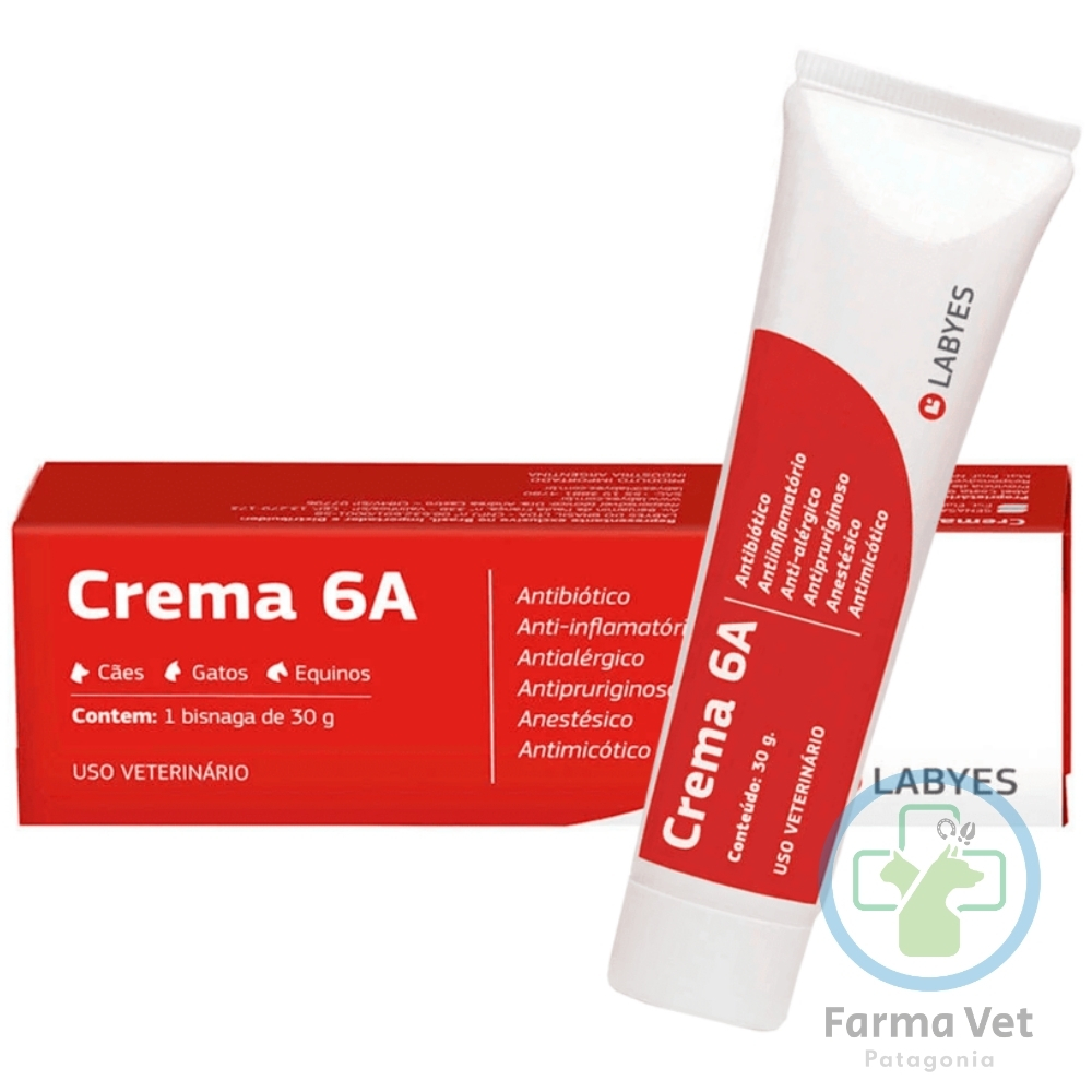 CREMA 6A del laboratorio argentino Labyes, es una de las cremas dermatológicas más completas y reconocidas. Su nombre deriva de sus 6 acciones: es Antiinflamatoria (Dexametasona), Antibiótica (Neomicina, Bacitracina), Antimicótica (Griseofulvina), Antialérgica, Anestésica (Benzocaína) y Cicatrizante (Vitamina A).