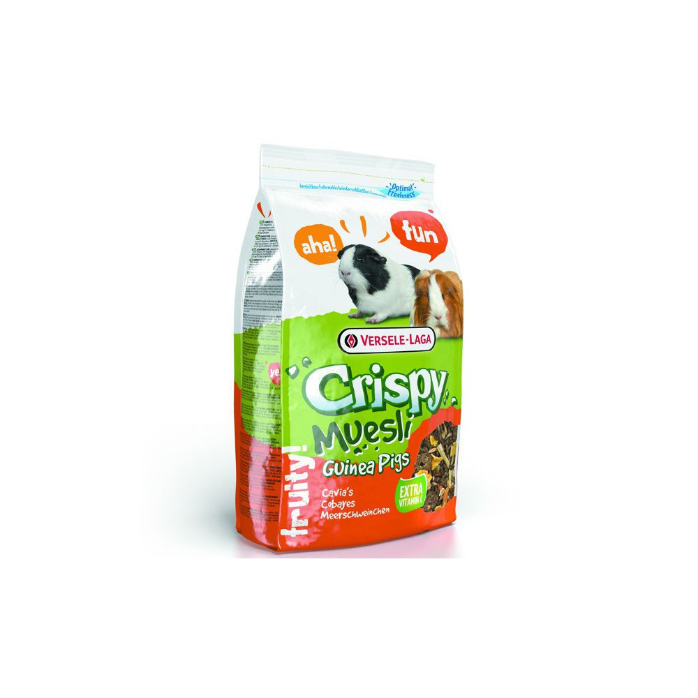 Pienso completo para cobayas, el Crispy Muesli es sabroso, rico en fibra y con un aporte extra de Vitamina C. Contiene todos los nutrientes que su mascota necesita para tener una vida saludable y activa.