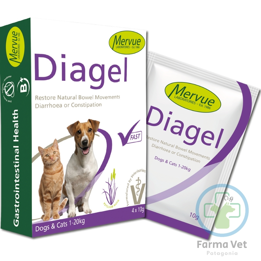 DIAGEL de Mervue, laboratorio irlandés de alta calidad, es un suplemento nutricional de triple acción para trastornos digestivos. Su fórmula contiene fibras dietéticas para ayudar a dar consistencia a las heces, electrolitos para reponer los minerales perdidos durante la diarrea, y dextrosa y vitaminas para aportar energía de rápida absorción.