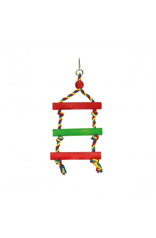 Escalera de color. Para loros y otras aves. Colores vivos hechos con tintes y colorantes no tóxicos. El juego estimula los sentidos y ayuda a prevenir el desplume. Medidas: 13 x 22 cm