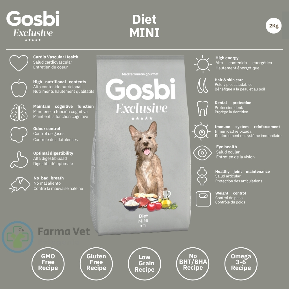 Mantener a tu perro de raza pequeña en su peso ideal es un acto de amor que protege su salud y alarga su vida. Con Gosbi Exclusive Diet Mini, le proporcionas una dieta de control de peso formulada por expertos y adaptada a su tamaño, sin sacrificar calidad ni sabor. GOSBI es estar cuidando activamente de su bienestar.
