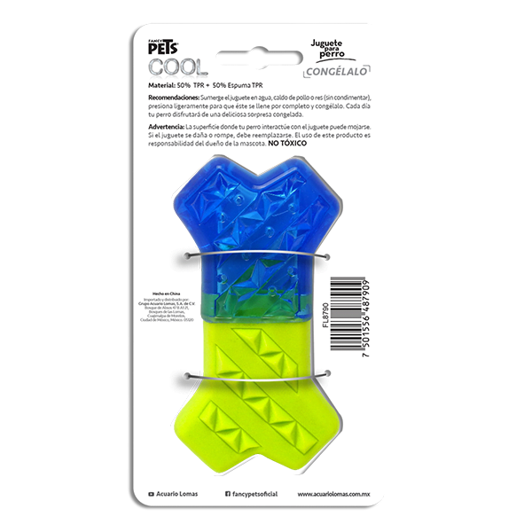 Juguete refrescante para Perro en forma de Hueso. Refresca a tu mascota en tiempos calurosos al brindarle un juguete que puede contener agua o caldo de pollo congelado, además puede ser auxiliar para disminuir molestias en las encías y dientes que pueden causar incomodidad den el cachorro en época de dentición