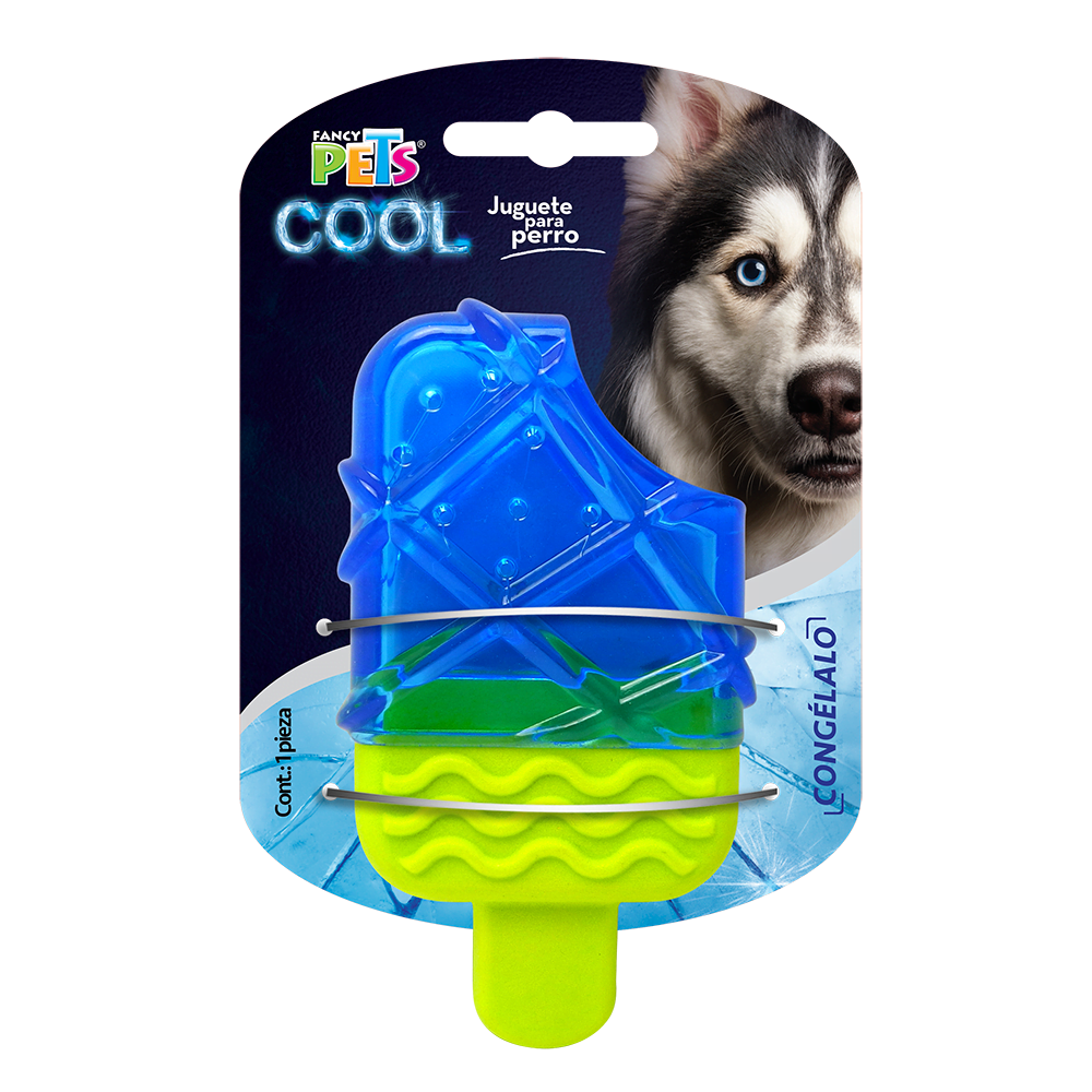 Juguete Refrescante para perro en forma de Paleta. Refresca a tu mascota en tiempos calurosos al brindarle un juguete que puede contener agua o caldo de pollo congelado, además puede ser auxiliar para disminuir molestias en las encías y dientes que pueden causar incomodidad den el cachorro en época de dentición