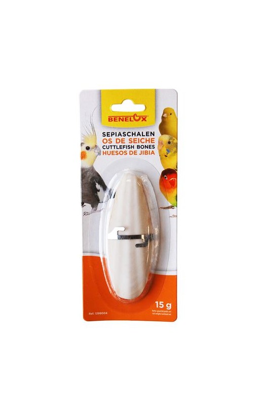 Los huesos de jibia de sepia es un producto natural y esterilizado, listos para su uso. Se usa en aves para mantener el pico afilado y que se desgaste en su continuo crecimiento a la vez que sirve de fuente de calcio y minerales para el pájaro. La proporción fósforo-calcio de los huesos de jibia es el idóneo para una correcta absorción. Contiene una combinación de vitaminas y minerales beneficiosos para los huesos, los músculos, el plumaje, la resistencia y la salud de su pájaro. Evita a su vez el crecimiento excesivo del pico y proporciona una novedad que será bien recibida en las actividades diarias del ave.