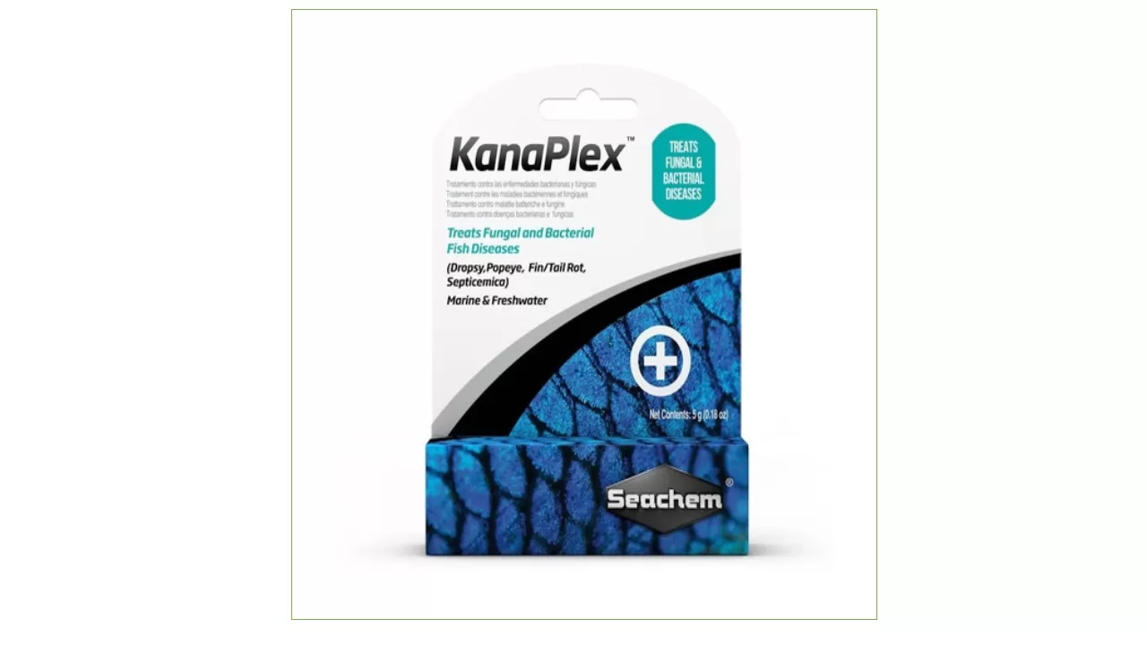 KANAPLEX es una medicación basada en una mezcla de kanamicinas que en forma segura y eficazmente trata varias enfermedades fúngicas y bacterianas de los peces (hidropesía, exoftalmia, putrefacción de la aleta y cola, septicemia). Porque es absorbida por los peces es útil para tratar infecciones internas en esas situaciones donde la comida es rehusada. No afecta negativamente al lecho de filtración y es fácilmente eliminada con carbón. Para uso en acuarios de agua dulce o marino.