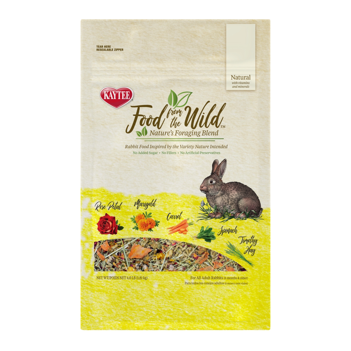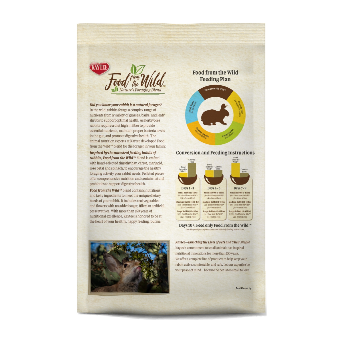 En la naturaleza, los conejos se alimentan de una variedad compleja de pastos, cortezas y arbustos frondosos para mantener una salud óptima. Como herbívoros, los conejos requieren una dieta alta en fibra para proporcionar nutrientes esenciales y mantener niveles adecuados de microbiota que promuevan su salud digestiva. Kaytee Food From the Wild es una dieta formulada por expertos inspirada en los hábitos de forrajeo de los conejos, está elaborada con heno, zanahoria, caléndula, pétalos de rosa y espinacas seleccionados a mano para fomentar la actividad de alimentación saludable que su conejo necesita. Incorpora pellets que ofrecen una nutrición integral y contienen probióticos naturales para apoyar la salud digestiva.