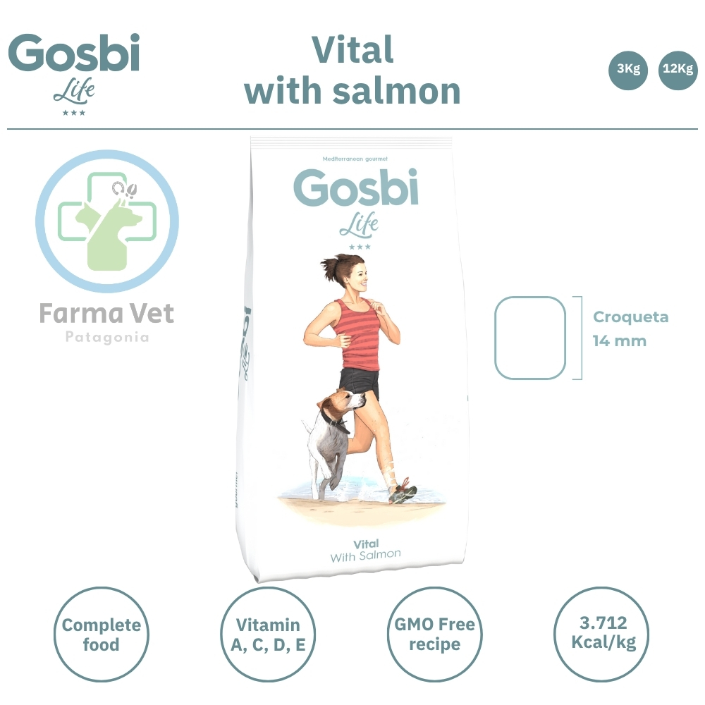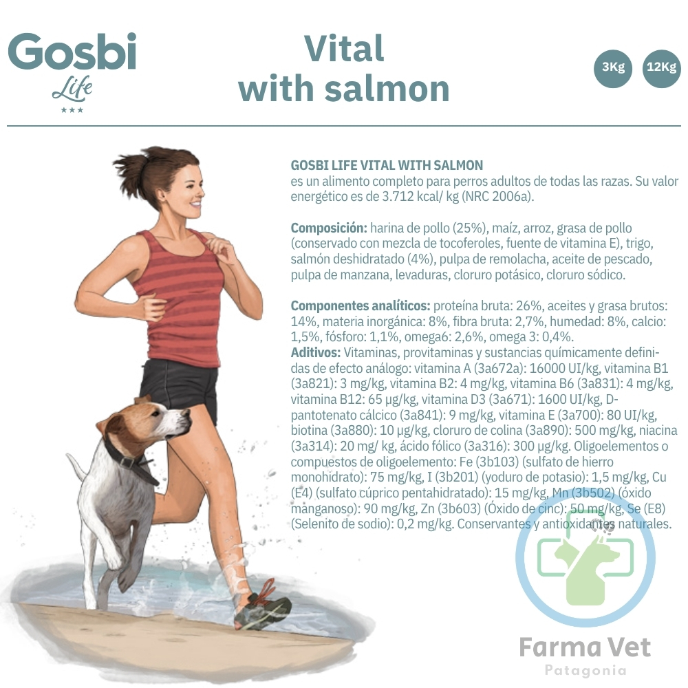 Una nutrición de alta calidad es la base para que tu perro disfrute de una vida activa y plena. Con Gosbi Life Vital with Salmon, eliges una dieta completa, natural y sabrosa, apta para perros adultos de todas las razas, que le aporta toda la energía que necesita. Te da la tranquilidad de estar cuidándolo con la calidad y confianza de Gosbi, en una fórmula accesible para el día a día.