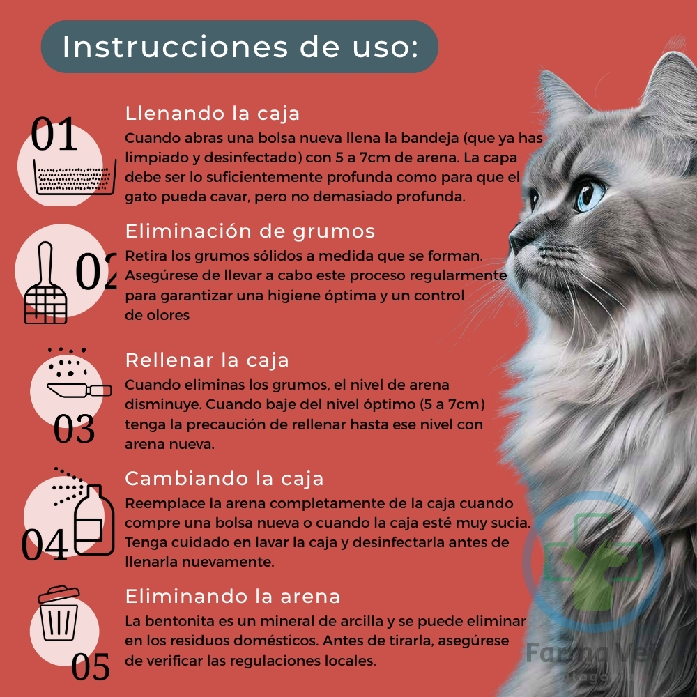 - Producto apto para uso en areneros cerrados gracias a que es Libre de polvo.