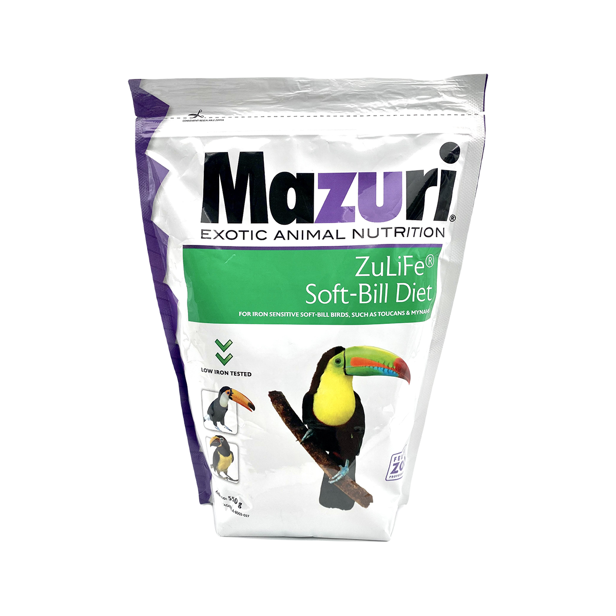 Mazuri® Softbill Diet es un alimento completo para pájaros de pico blando, especies de aves frugívoras sensibles al hierro y como tucanes, tucanetas, entre otros. Se distingue por su alta palatabilidad, contiene frutas naturales, su fórmula garantiza la alimentación adecuada de las aves de pico blando sensibles al hierro.