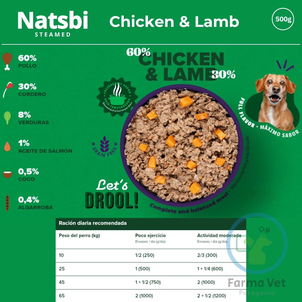 NATSBI STEAMED CHICKEN & LAMB 500 G Comida al Vapor Gourmet