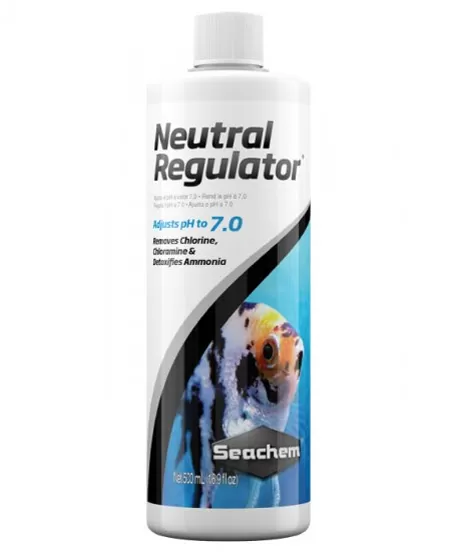 Liquid Neutral Regulator® ajusta el pH a neutral (pH 7.0) desde un pH bajo o alto y lo mantiene ahí. Suaviza el agua al precipitar el calcio y el magnesio mientras elimina el cloro, la cloramina y el amoníaco desintoxicante. El uso de Liquid Neutral Regulator® hace innecesario otro acondicionamiento. Para bajar el pH por debajo de 7,0, use Liquid Neutral Regulator® con Acid Regulator™ (o Discus Buffer®). Para elevar el pH por encima de 7,0, use Alkaline Regulator™. Todos estos productos mejorarán y estabilizarán el ambiente del acuario de agua dulce. Para mejorar aún más el entorno de agua dulce, use Fresh Trace™ para restaurar el nivel adecuado de oligoelementos y alimente NutriDiet® Tropical Flakes para una comunidad de peces de agua dulce próspera y saludable.