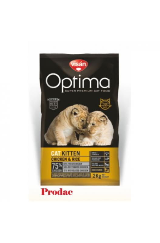 VISAN OPTIMA NOVA KITTEN (pollo y arroz), es un alimento completo para gatitos desde 2 hasta los 12 meses de edad y hembras gestantes y lactantes. OMEGA 3 Y OMEGA 6: Protege al sistema inmunológico de numerosas enfermedades, ayuda a desarrollar la salud cardiovascular y el sistema nervioso durante la gestación y crecimiento. Evita que el pelo tenga un aspecto seco y quebradizo. SKIN AND COAT PROTECTION: La presencia de el Zinc ayuda a la regeneración de la piel, manteniéndola en un estado sano y vigoroso. Los ácidos grasos la fortalecen y consiguen un pelo fuerte y brillante. FOS+MOS INTESTINAL HEALTH: El efecto prebiótico del FOS, estimula la flora bacteriana beneficiosa del sistema digestivo (efecto bífidus). Los MOS eliminan la flora perjudicial, logrando una mejor salud digestiva. RICH IN TAURINE: Aminoácido esencial para el funcionamiento del corazón, consigue un perfecto desarrollo de la función visual y evita trastornos cardíacos y digestivos. COMPOSICIÓN: Pollo fresco (40%), carne de pollo deshidratada (30%), arroz (12%), maiz, aceite de pollo, hidrolizado de higado de pollo (5%), glutén de maiz, proteina de arroz, levaduras, pulpa de remolacha, aceite de pescado, cloruro sódico, Inulina (0.1%, fructo-oligosacáricos, Manano-oligosacáridos (0.1%). CONSTITUYENTES ANALÍTICOS: Proteína bruta 33%, aceites y grasas brutas 18%, ácidos grasos omega 6 3,75% ácidos grasos omega 3 0,75%, fibra bruta 2%, fibra dietética total 6,0%, ceniza bruta 7,0%, Calcio 1,2%, Fósforo 1%, humedad 9,0%,. ADITIVOS: Aditivos Nutricionales: Vitamina A 20.000 UI7mg, Vitamina D3 1.600 UI / mg, Vitamina E 600 mg/kg, Vitamina C 100 mg, L-Tautina 1.000 mg/kg, DL-metionina 1.000 mg/kg, L-threonina 1.000 mg/kg, Hierro (sulfato ferroso monohidratado) 200 mg/kg, Yodo (yoduro potásico) 3,5 mg/kg, Cobre (sulfato cúprico pentahidratado) 10 mg/kg, Manganeso (sulfato manganoso monohidratado) 10 mg/kg, Zinc (óxido de zinc) 150 mg/kg, Selenio (selenito sódico) 0.2 mg/kg, Extractos de cítricos (ricos en bioflavonoides) 1000 mg/kg. Aditivos Tecnológicos: Protegido con antioxidantes naturales (tocoferoles) con efecto antienvejecimiento eliminando los radicales libres (propiciadores de la acción tumoral). Disponible en envases de 400 gr, 2 kg y 8 kg.