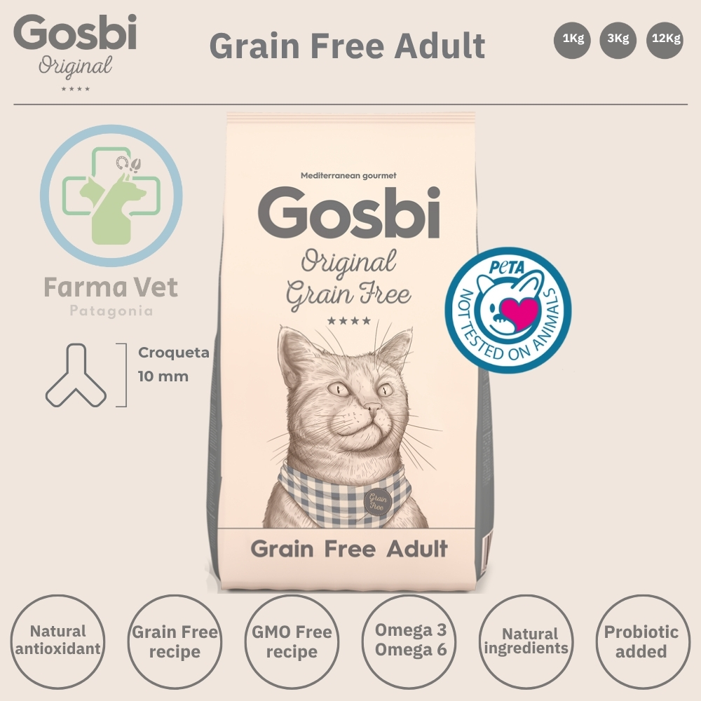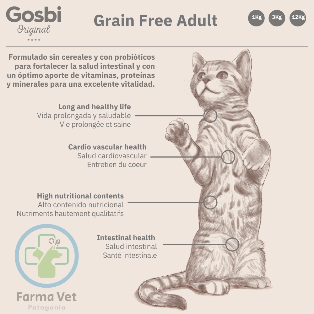Para el día a día de un gato adulto activo y sano, Gosbi Original Cat Grain Free Adult ofrece una nutrición de alta calidad, clara y directa. Esta fórmula sin granos está diseñada para el mantenimiento óptimo, respetando la naturaleza carnívora de tu felino con ingredientes superiores.