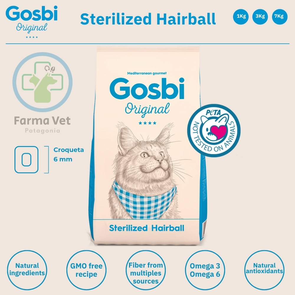 Las bolas de pelo y el control de peso son dos de las mayores preocupaciones para los tutores de gatos esterilizados. Con Gosbi Original Cat Sterilized Hairball, le ofreces una solución nutricional completa que aborda ambos problemas. Es la tranquilidad de saber que lo cuidas con una dieta específica que mejora su digestión y mantiene su condición corporal ideal.