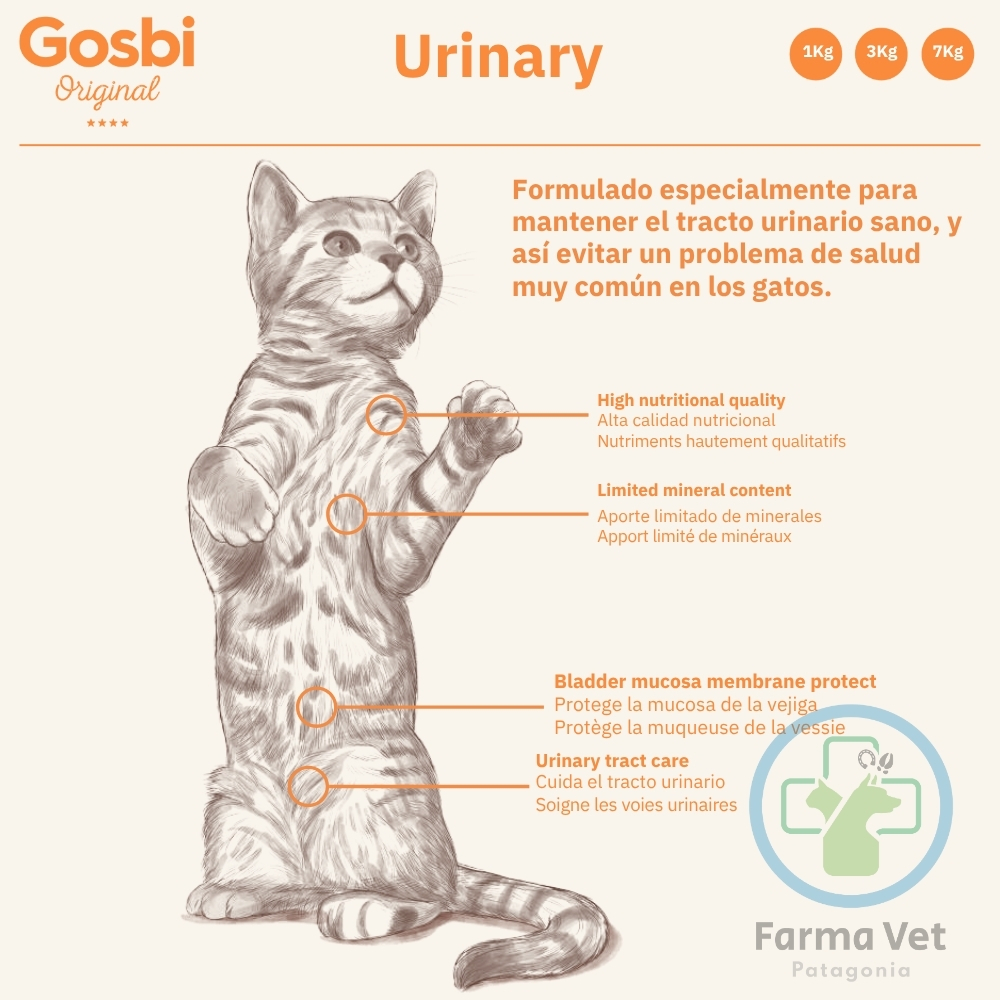 Los problemas del tracto urinario son delicados y requieren una dieta específica. Con Gosbi Original Cat Urinary, ofreces a tu gato un alimento que le ayudará; formulado para proteger su sistema urinario de forma integral. GOSBI es estar dándole un soporte nutricional preciso que ataca el problema desde múltiples frentes.