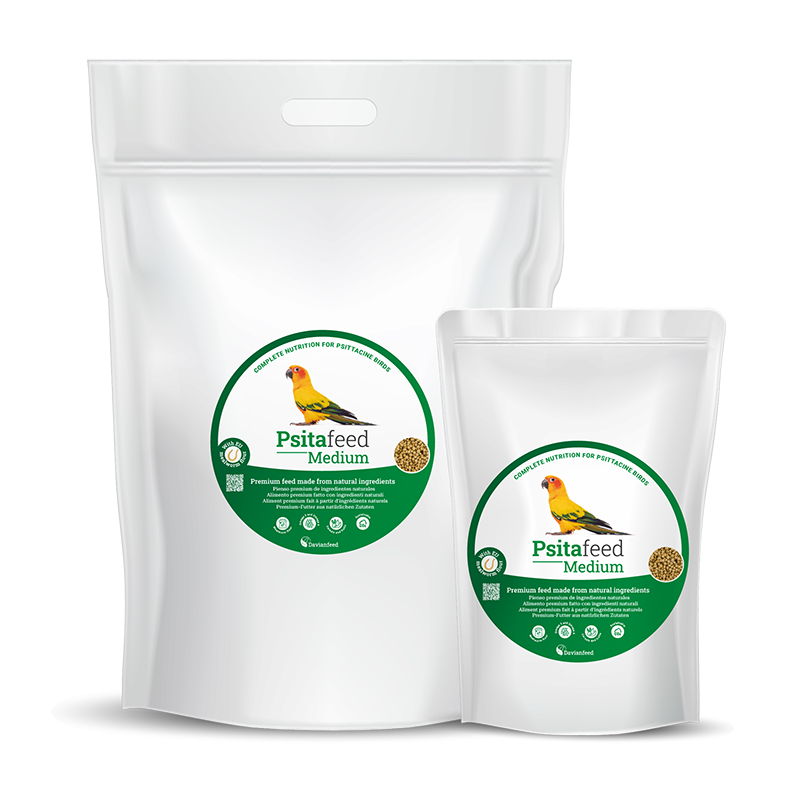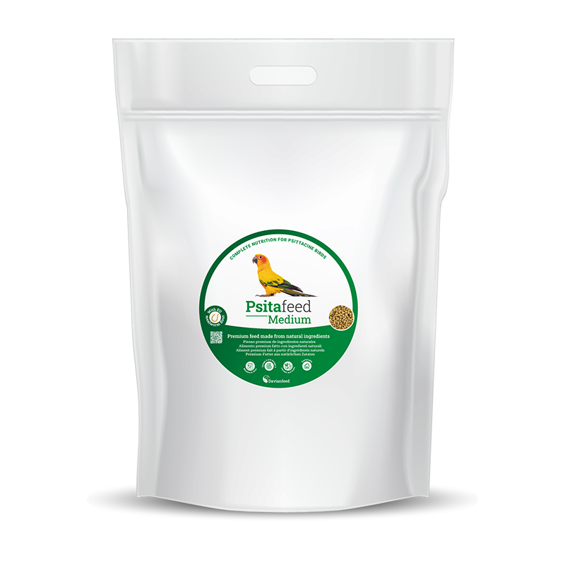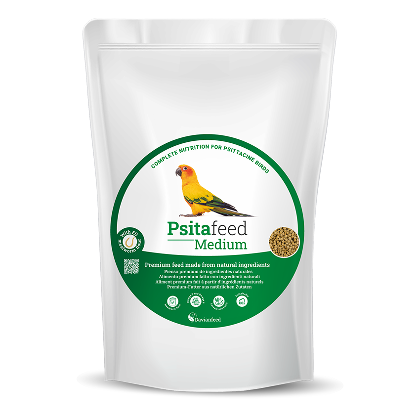 Pienso completo premium procedente de la naturaleza con ingredientes ancestrales y base de proteína con larva de Tenebrio molitor criada en la UE para alimentación humana. Indicado para el mantenimiento de todas las especies de psitácidas de tamaño mediano. Especialmente desde cotorras del sol (Aratinga solstitialis) hasta cacatúas rosas (Eolophus roseicapillus).