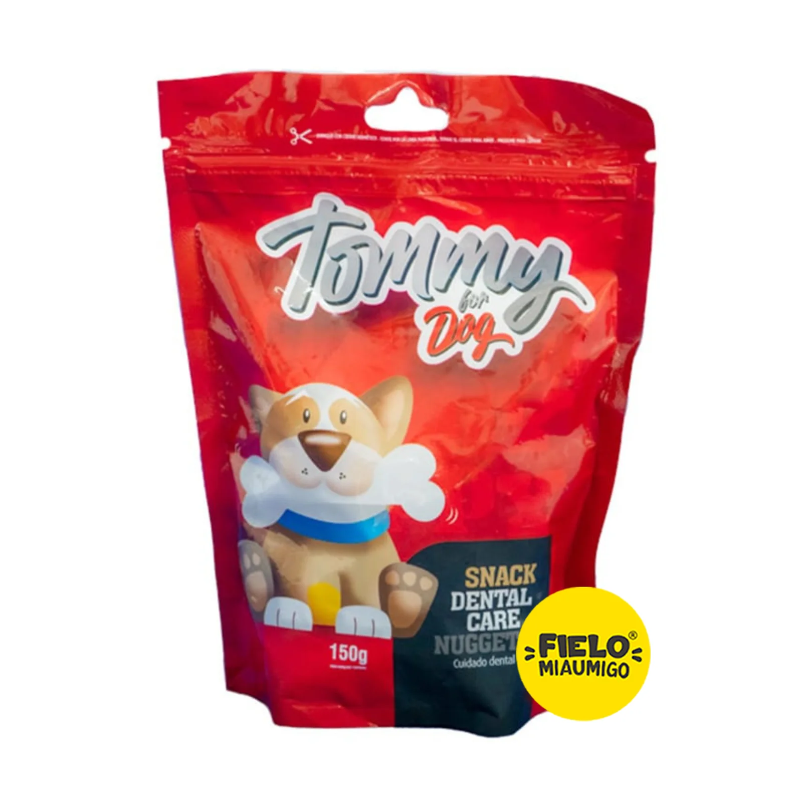 Snack Tommy for Dogs Dental Care x 150 g es un snack dental para perros que contribuye al cuidado de dientes y encías, ayudando a disminuir la acumulación de placa y sarro gracias a su textura abrasiva. Su fórmula está diseñada para refrescar el aliento, mejorar la higiene oral y ofrecer un premio delicioso que los perros disfrutan.