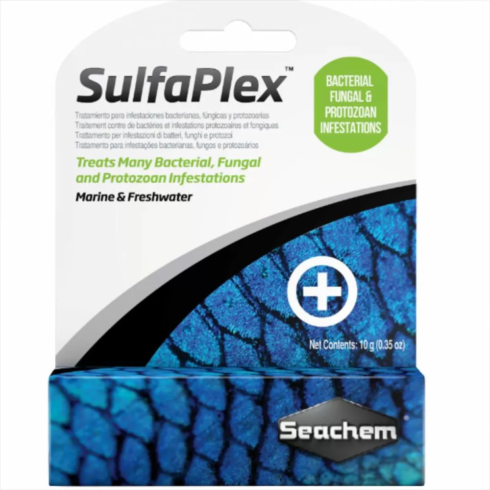 SULFAPLEX es un tratamiento efectivo y seguro para muchas infestaciones bacterianas, fúngicas y protozoarias en el acuario. la dosis usual es de 250 mg por cada 40 L ,pero estas dosis pueden ser aumentadas hasta en cuatro veces. fácilmente eliminable con carbón y no deteriora el proceso de nitrificación. Para uso en acuarios de agua dulce o marino.